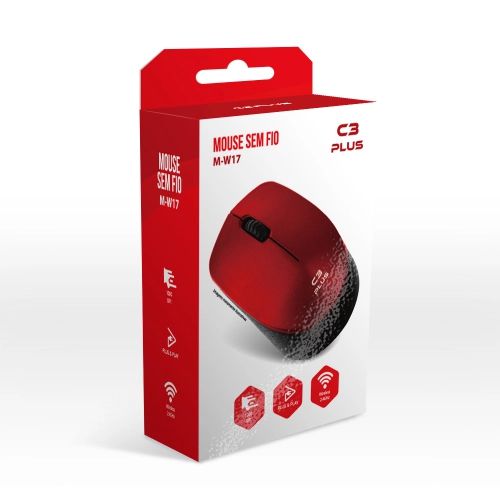 Mouse Usb Sem Fio USB Vermelho 1000 Dpi - M-W17RD - C3 Plus